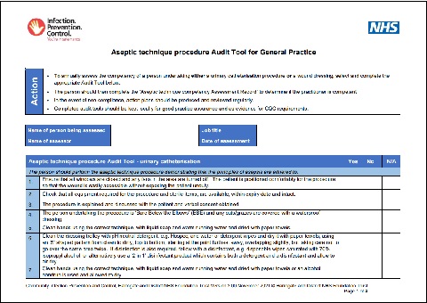 Practitioners should be assessed for their level of competency when undertaking an aseptic procedure for either a urinary catheterisation procedure or a wound dressing.