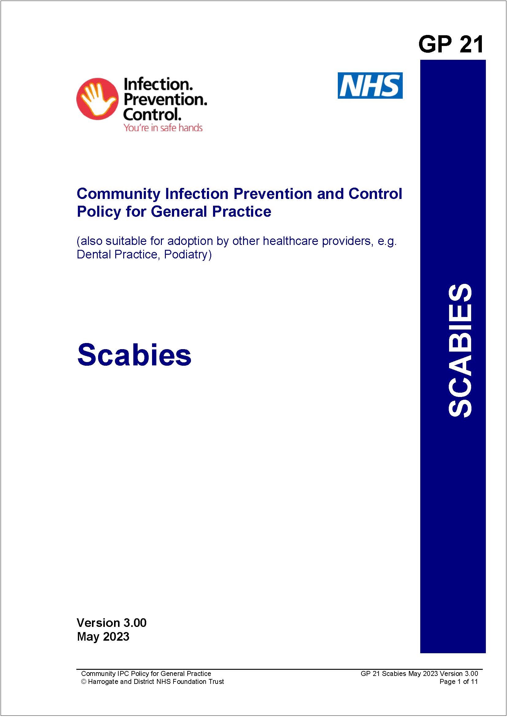 Scabies IPC Policy for General Practice.